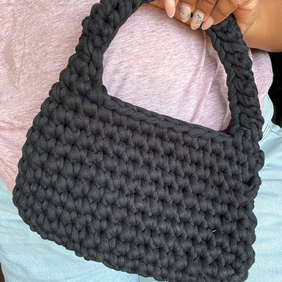 Experience the refined charm of the Evening Elegance Mini, a compact handbag designed for stylish outings. Crocheted with care, this over-the-wrist accessory embodies sophistication and sustainability. Ideal for evening events, it pairs beautifully with any wardrobe while reflecting our commitment to craftsmanship and eco-conscious practices. Add a touch of artisanal elegance to your collection with this thoughtfully made, sustainable mini bag.